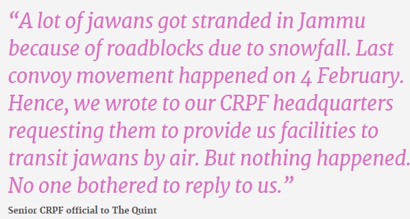 कमाल की बात यह है कि 1 जनवरी से हवाई सुविधा शुरू करने के आदेश की चिट्ठी 11 अप्रैल को जारी की गयी यानी सिर्फ 4 महीने ही यह सेवा जारी रह पाई, अर्धसैनिक बलों के जवानों के लिए दोबारा हवाई सेवा शुरू करने का प्रस्ताव चार महीने से गृह मंत्रालय में लंबित है। इसे वित्तीय कारणों से मंजूरी नहीं मिली है।