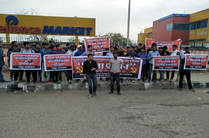‘कर लो दुनिया मुट्ठी में ‘ – मुकेश अंबनी की कंपनी रिलायंस का यह जगप्रसिद्ध नारा है। लेकिन अंबनी की दुनिया में उन लोगों की जगह कीड़े-मकोड़ों जैसी है जो अपनी मेहनत से उसका साम्राज्य खड़ा करते हैं। इन दिनों जयपुर में रिलायंस जियो के मज़ूदरो की हड़ताल चल रही है क्योंकि कंपनी ने अपने दो हज़ार से ज़्यादा कर्मचारियों की ग़ैरक़ानूनी ढंग से निकाल दिया है। मीडिया पर क़ाबिज़ अंबानी की इस महात्वकांक्षी परियोजना से जुड़ी हड़ताल की ख़बर पर मीडिया की शर्मनाक चुप्पी देखने लायक़ है।