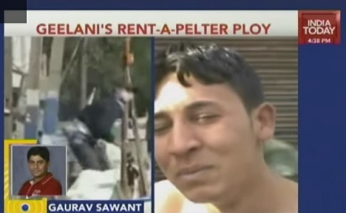 पहला वीडियो बनियान पहने एक कश्मीरी लड़के का है जो सीआरपीएफ के जवानों से घिरा हुआ है। वीडियो में वो चीख रहा है कि उसे और उसके गिरोह को अलगाववादी नेता सैयद अली शाह गिलानी 500-500 रुपए भारतीय जवानों पर पत्थर फेंकने की एवज में देते हैं। अपने सरकार समर्थित नज़रिए के लिए बदनाम इंडिया टुडे के एंकर राहुल कंवल ने इस वीडियो को प्रसारित करने से पहले एक ट्वीट किया, ‘आज न्यूज़रूम में पत्थर फेंकने वाले एक कश्मीरी का क़ुबूलनामा जिसमें वो कहता है कि कश्मीर में उत्पात मचाने के लिए अलगाववादी उसे फंड देते हैं।’