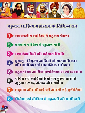 इस महोत्सव के संयोजक राजकुमार मल्होत्रा ने बताया कि दो दिन चलने वाले इस महोत्सव में कुल आठ सत्र होंगे ,जो समकालीन साहित्य में बहुजन चेतना ,बहुजन स्त्री ,सफाई कर्मियों की स्थिति ,घुमन्तू विमुक्त जातियों की समस्याएं ,आर्थिक सशक्तिकरण ,आदिवासी अधिकार ,सद्भाव सौहार्द की उभरती चुनोतियों और सिनेमा व मीडिया में बहुजनों की भागीदारी पर केंद्रित होंगे ।