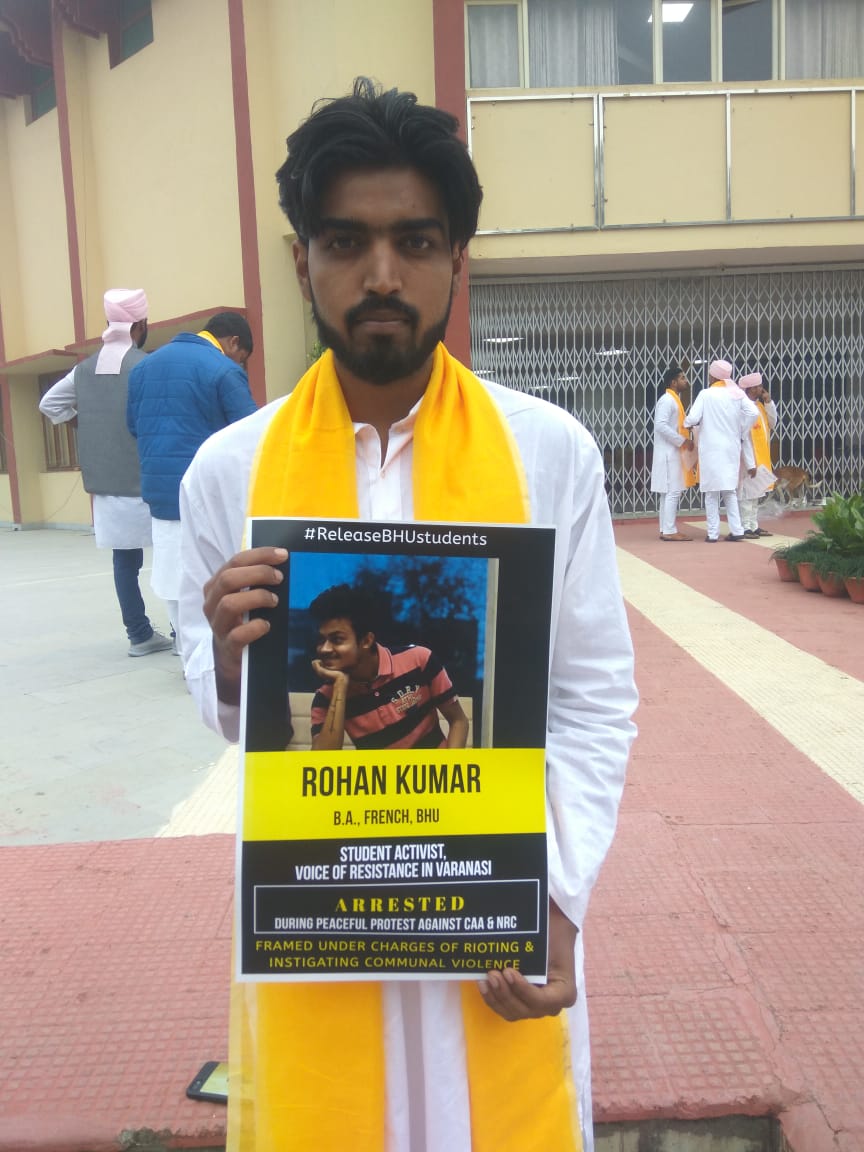 बनारस के प्रदर्शन में किसी भी प्रकार की कोई हिंसा नहीं हुई थी, उसके बावजूद पुलिस ने बीएचयू के छात्रों के ऊपर संगीन धाराओं में मुकदमे लगाए हैं.बता दें कि 19 दिसम्बर को बनारस में नागरिकता संशोधन कानून के विरोध में शांतिपूर्ण प्रदर्शन कर रहे करीब 20 बीएचयू छात्र सहित पुलिस ने 70 लोगों को जेल भेज दिया था.
