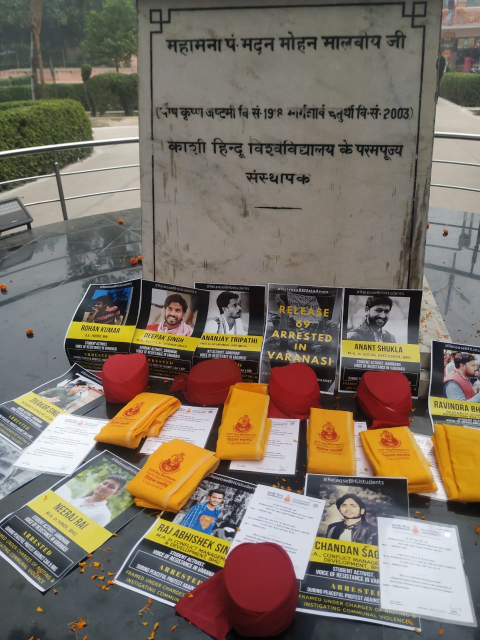 इस दौरान छात्र कला संकाय में उन छात्रों के पोस्टर लेकर खड़े हुए , जिन्हें पुलिस ने नागरिकता कानून को लेकर प्रदर्शन कर रहे छात्रों को हिरासत में लिया था. इन छात्रों ने प्रदर्शन के दौरान गिरफ्तार किये गए छात्रों को अविलंब रिहा करने की मांग की है .