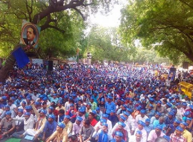 21 मई की सुबह से भीड़ जमा होनी शुरू हो गयी थी जंतर-मंतर पर. देखते ही देखते आसमान का रंग जमीन ओढ़ने लगी थी. वही आलम सोशल मीडिया का भी था. हर ओर नीला ही नीला. मुख्यधारा मीडिया का काम इस बार सोशल मीडिया बखूबी निभा रहा था. जो तस्वीरें आती रहीं उनमें फ्राँस, अमेरिका और जर्मनी के कुछ पत्रकार कैमरा और माइक के साथ थे पर भारतीय मीडिया घरानों चर्चित या अर्चित पत्रकार या ऐंकर नहीं दिखे। साख के मामले में भारतीय मीडिया 180 देशों की सूची में 136 वें पर यूँ ही नहीं है। दबी-कुचली-वंचित जनता के आक्रोश के लिए वहाँ जगह नहीं है। अगर वार ब्राह्मणवाद की बुनियाद पर हो रहा हो, तब तो यह संपादकों और पत्रकारों का निजी मामला जैसा हो जाता है। वे सहारनपुर से लेकर झारखंड तक मचे उत्पात को दबाने के लिए पाकिस्तान पर गोलाबारी तेज़ कर देते हैं। घेरकर मारे जा रहे निर्दोषों की चीख़ दबाने के लिए परेश रावल के ट्वीट का शोर मचा देते हैं।