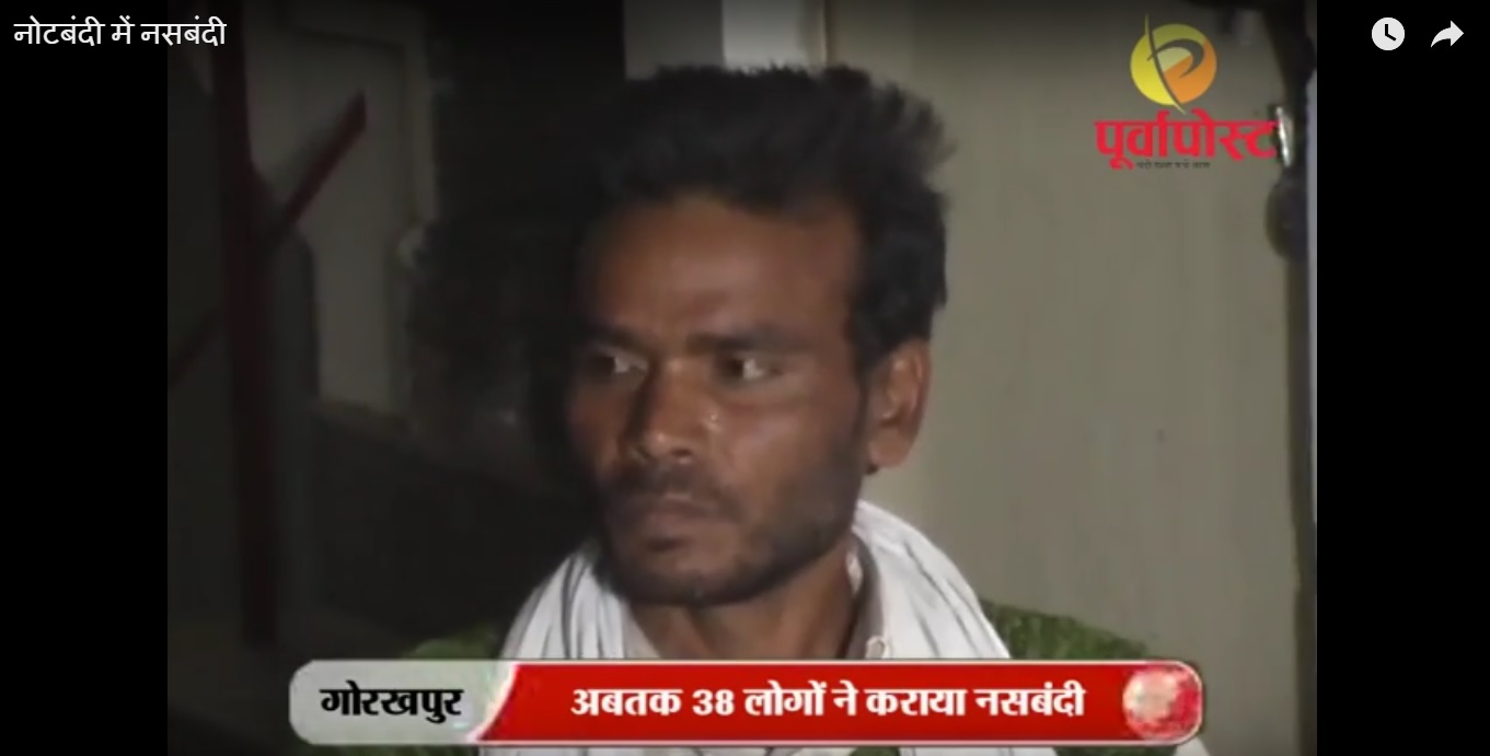 पूर्वांचल की खबरों पर केंद्रित वीडियो वेबसाइट पूर्वा पोस्ट ने 28 नवंबर की शाम जो वीडियो प्रकाशित किया है, वह भयावह भविष्य का एक दर्दनाक संकेत है। वेबसाइट पर छपी रिपोर्टर पंकज श्रीवास्तव की खबर और वीडियो के मुताबिक पूर्वी उत्तर प्रदेश के गोरखपुर में 8 नवंबर को घोषित नोटबंदी के बाद बेरोज़गार हुए दिहाड़ी मज़दूर पेट भरने के लिए तेजी से नसबंदी करवा रहे हैं।