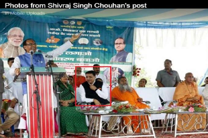 चौहान से उनकी निकटता का अंदाज़ा इस तस्वीर से भी लगाया जा सकता है जिसमें वे मुख्यमंत्री की कार की अगली सीट में बैठे हैं।