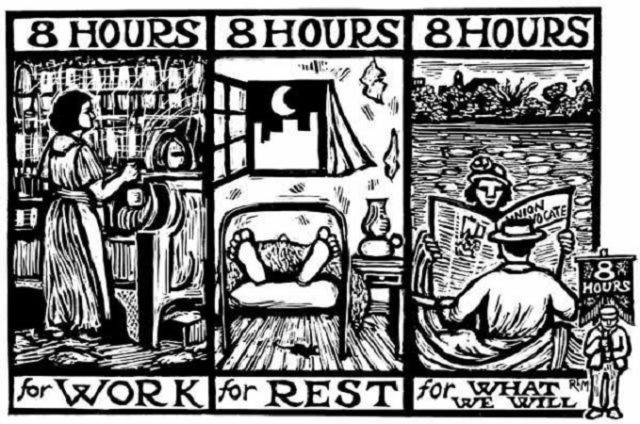 सभ्य होने की कसौटी एक ऐसा जीवन है जिसमें सबको काम, आराम और मनोरंजन हासिल हो। इन सभी के लिए 8-8 घंटे का सिद्धांत को आदर्श माना गया। लेकिन इस सिद्धांत को उन्होंने कभी नहीं माना जो मज़दूरों के श्रम के शोषण पर अपना साम्राज्य खड़ा करना चाहते हैं।