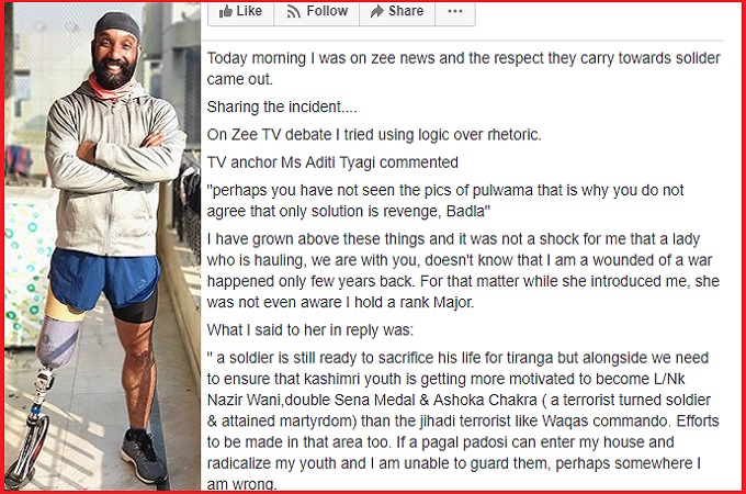हम चाहते हैं कि सैनिक मरें लेकिन जब उनके अपनों को बचाने की बात आती है तो उनके ख़िलाफ़ केस कर दिया जाता है क्योंकि उसने पत्थरबाज को जीप पर बांधकर बैठाया था.