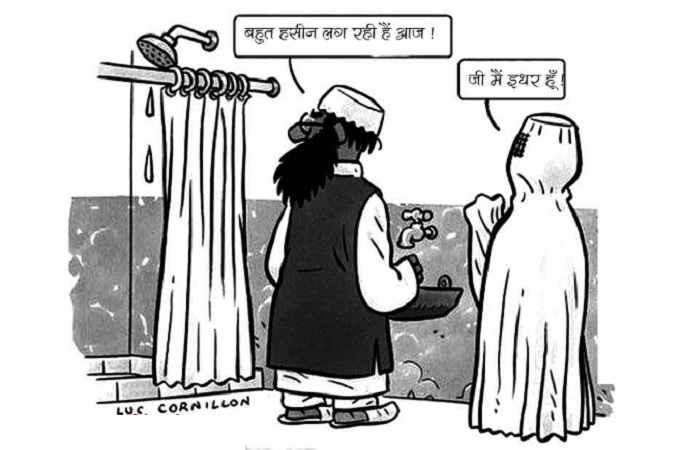 मुल्ला: मेरी बहन आप पहले तो शरई तरीके से बाहर निकलिये. आपका बुर्क़ा कहाँ है? आप जिस तरह बेशर्मी से बहस कर रही हैं, मुंह खुला हुआ है , इसकी इजाज़त इस्लाम में नहीं।