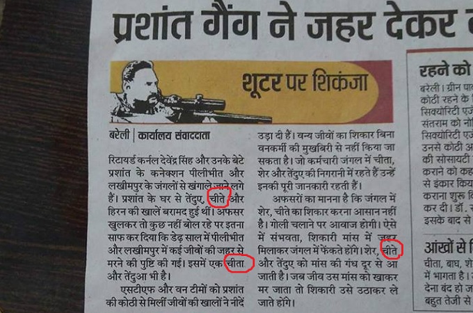 लेकिन इसका मतलब ये तो नहीं कि हिंदुस्तान के पत्रकार चीता टहलाने लगें। कुछ दिन पहले मेरठ में जिस पूर्व सैन्य अफ़सर के शिकारी बेटे के घर वन्य जीवों की खालें, माँस और हथियार वगैरह मिले, उससे जुड़ी ख़बर में हिंदुस्तान के बरेली संस्करण में यही हुआ।