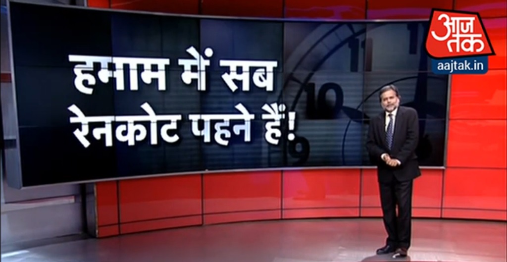 दूसरे किस्म का पता चलना पुण्य प्रसून वाजपेयी के प्रोग्राम का होता है। चुपके से पता चलता है। लोग उसे फेसबुक पर शेयर नहीं करते। पत्रकारिता में साहस और क्रांतिकारिता का पोस्टर ब्वाय बनाकर प्रसून को पेश नहीं करते। लोकप्रियता का बाज़ार है। प्रसून लोकप्रिय नहीं हैं, चाहे वे खुद को जितना ही क्यों न मान लें। मसलन, आज ट्विटर पर टहलते हुए किसी का ट्वीट दिखा जिसमें उसने एक लाइन में आज तक की एक हेडिंग का जि़क्र किया था। देखकर लगा कि हो न हो, इसे प्रसून ही लिख सकते हैं। और कोई नहीं। खोजखाज कर निकाल लिया। पता चला आज 10तक में प्रसून के शो की यह पंचलाइन थी: हमाम में सब रेनकोट पहने हैं!