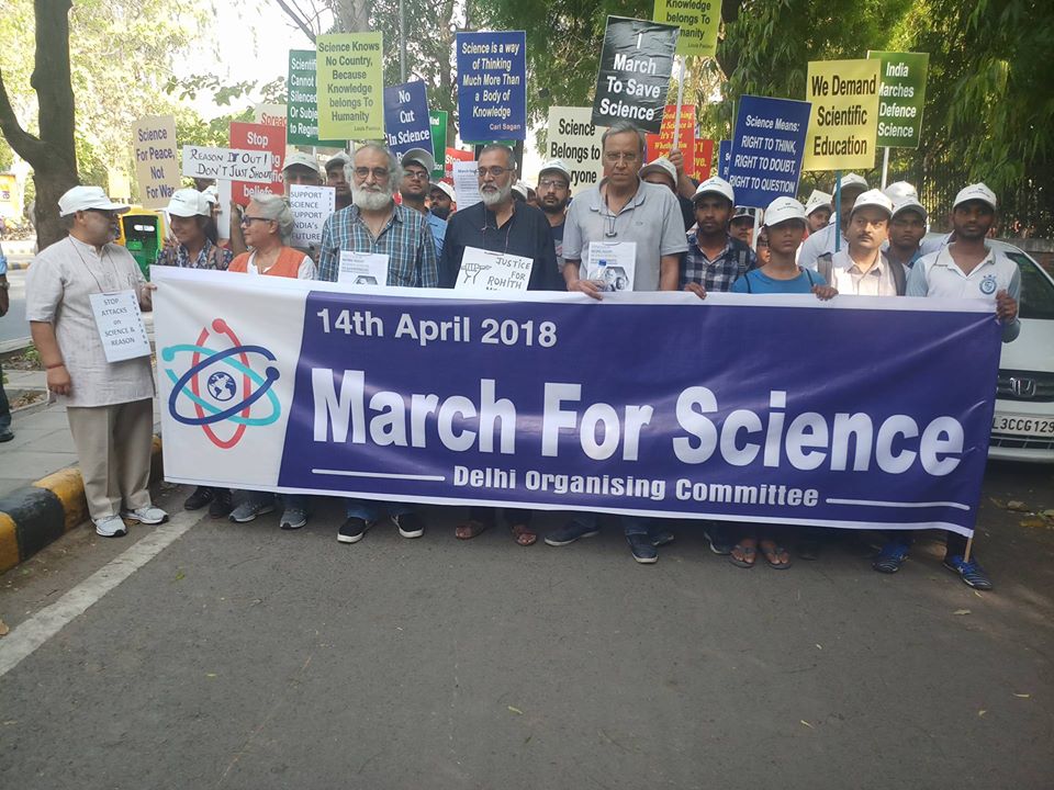 दिल्ली: दुनिया भर में वैज्ञानिक सोच पर हो रहे हमले और शिक्षा में सिकुड़ते वैज्ञानिक दायरे के विरोध में दुनिया भर के वैज्ञानिकों, समाजविज्ञानियों ने अपने-अपने शहर में शनिवार को एक मार्च का आयोजन किया। इसी क्रम में विज्ञान और वैज्ञानिक सोच को बढ़ावा देने के लिए दिल्ली में भी मंडी हाउस से संसद मार्ग तक एक मार्च का आयोजन किया गया। इस मार्च में विभिन्न विश्वविद्यालयों के प्रोफेसर शामिल रहे। देश भर के 65 शहरों में ऐसे ही मार्च का आयोजन किया गया।