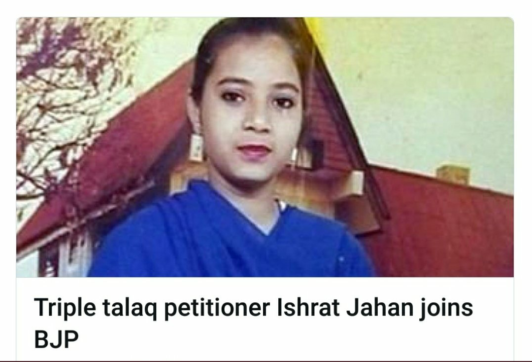 तीन तलाक़ के मसले पर सुप्रीम कोर्ट में याचिका डालने वाली मुस्लिम औरतों में एक इशरत जहां ने सोमवार को पश्चिम बंगाल में जब भारतीय जनता पार्टी की औपचारिक सदस्यता ली, तो ज़ी न्यूज़ ने अपनी वेबसाइट पर जो ख़बर चलायी उसमें मृत इशरत जहां की तस्वीर लगा दी।