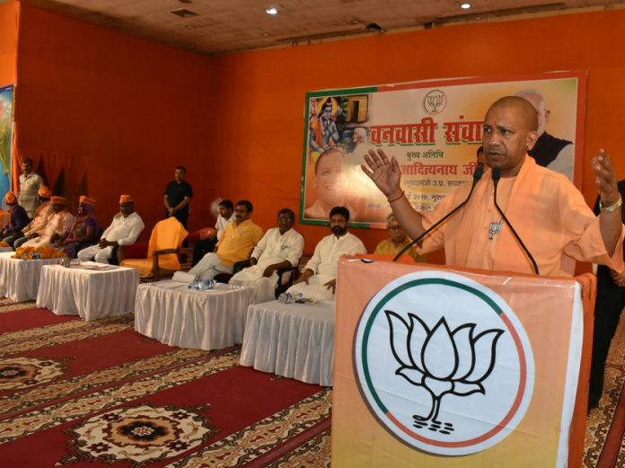 जौनपुर, गाजीपुर, चंदौली, मिर्जापुर, भदोही और वाराणसी सहित पूर्वांचल की नौ सीटो पर चुनाव से ठीक पहले 16 मई की सुबह 10 बजे की बात है। महागठबंधन के नेता मायावती, अखिलेश यादव और चौधरी अजित सिंह वाराणसी के सीर गोवर्धनपुर स्थित संत रविदास समागम स्थल पर एक ओर महारैली कर रहे थे, ठीक उसी वक्त वाराणसी के सांस्कृतिक संकुल, चौकाघाट पर बीजेपी और राष्ट्रीय स्वयंसेवक संघ के वनवासी संवाद कार्यक्रम में मुख्यमंत्री योगी आदित्यनाथ वनवासियों को उनकी सरकार में मिले लाभ गिनवा रहे थे. वे वनवासी महादलितों की समस्याएं सुन रहे थे.