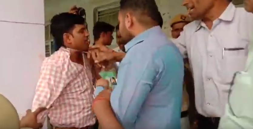 #WATCH Moradabad: BJP workers beat an Election Official at booth number 231 alleging he was asking voters to press the 'cycle' symbol of Samajwadi party pic.twitter.com/FokdXCAJ1z