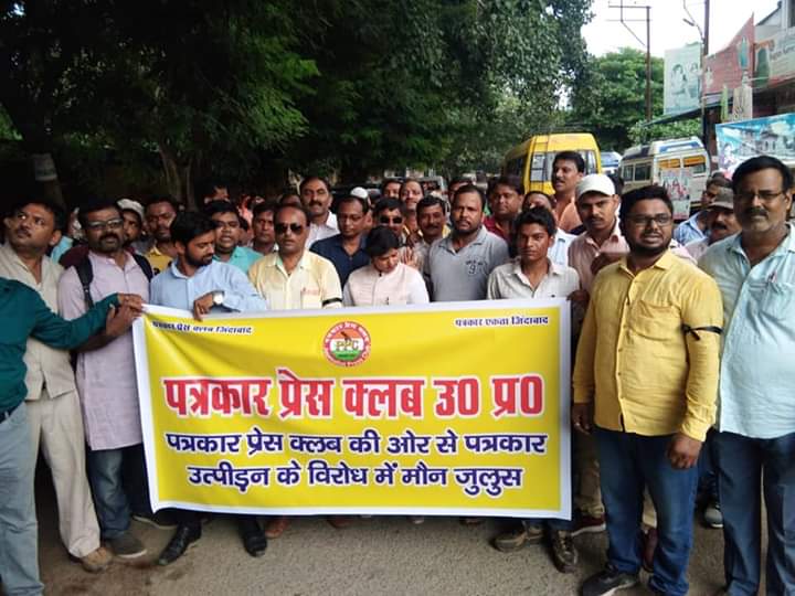वाराणसी। जिलाधिकारी मिर्जापुर, अनुराग पटेल ने पत्रकार पवन जायसवाल के साथ तो ऐसा कृत्य कर दिया कि सभी पत्रकारों को इमरजेंसी की याद आने लगी। प्रदेश,देश के साथ विदेशो तक मिर्जापुर के डीएम की थू-थू हुई,उसके बावजूद भी प्रदेश सरकार ने उनके खिलाफ कार्रवाई करना मुनासिब नहीं समझा। जिलाधिकारी के इस गलत रवैये से क्षुब्ध होकर पत्रकार प्रेस क्लब के प्रदेश अध्यक्ष घनश्याम पाठक के नेतृत्व में वाराणसी जिले के सारनाथ में तथागत भगवान बुद्ध की उपदेश स्थली से आज दिनांक 16 सितंबर 19 को अपराहन वाराणसी,चंदौली,जौनपुर, भदोही,मिर्जापुर,सोनभद्र, मऊ के सैकड़ों पत्रकारों ने बांह पर काली पट्टी बांधकर मौन जुलूस निकालकर विरोध प्रदर्शन किया।