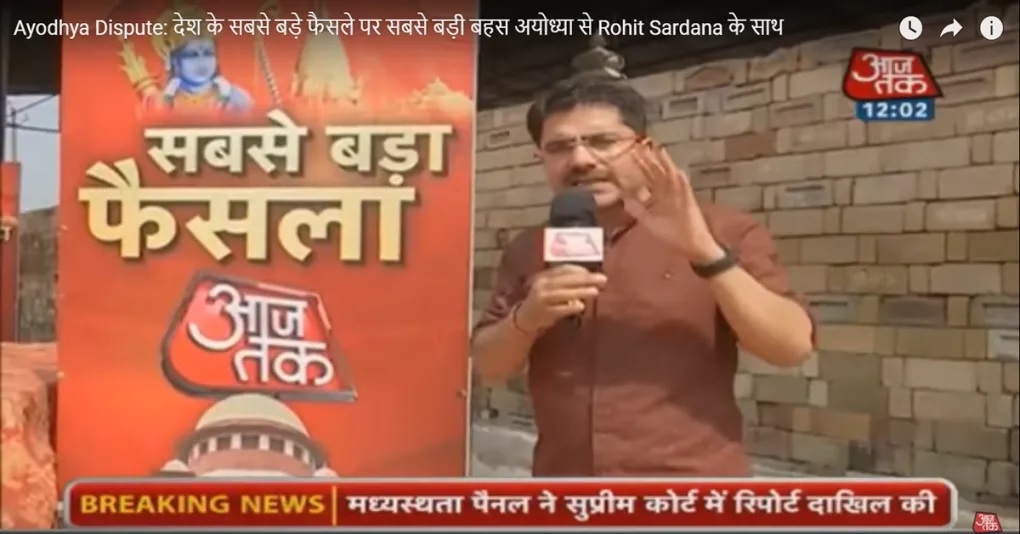 बता दें कि अयोध्या भूमि विवाद पर सुप्रीम कोर्ट के फैसले पर आजतक के एंकर रोहित सरदाना ने एक कार्यक्रम किया था जिसका शीर्षक था – “देश के सबसे बड़े फैसले पर सबसे बड़ी बहस अयोध्या से रोहित सरदाना के साथ”.