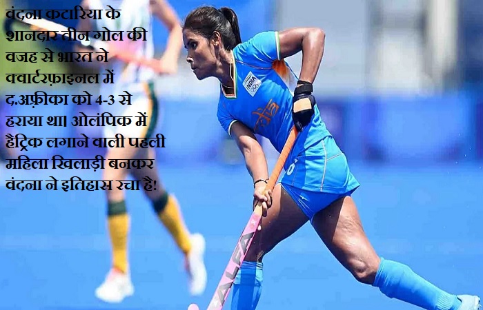 ग़ौरतलब है कि दलित परिवार से ताल्लुक रखने वाली वंदना ने ओलंपिक के महिला हॉकी मुक़ाबले में हैट्रिक जमा कर इतिहास रच दिया था। वे ऐसा करने वाली पहली हॉकी महिला खिलाड़ी हैं। 37 साल बाद किसी भारतीय खिलाड़ी ने ऐसा चमत्कार किया था। उनके शानदार प्रदर्शन की वजह से भारत हराकर सेमीफ़ाइनल में पहुँचा था। लेकिन शायद आसपास के कुछ लोगों को एक दलित बेटी की ये उड़ान पसंद नहीं आयी।