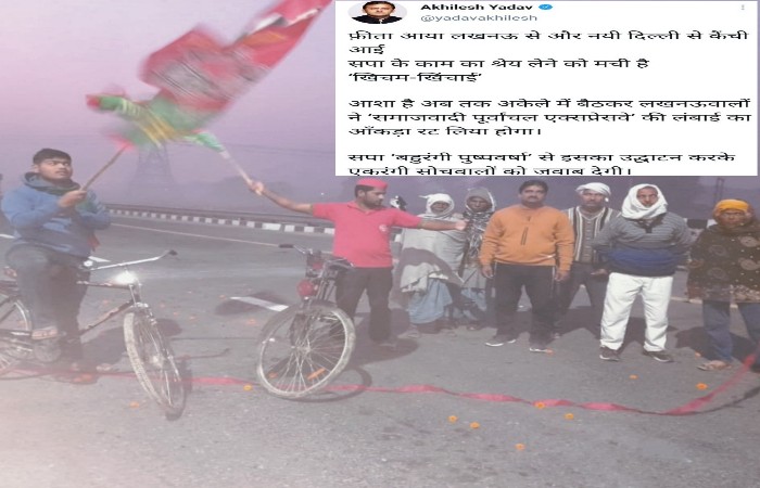 सपा के काम का श्रेय लेने को मची है ‘खिचम-खिंचाई’आशा है अब तक अकेले में बैठकर लखनऊवालों ने ‘समाजवादी पूर्वांचल एक्सप्रेसवे’ की लंबाई का आँकड़ा रट लिया होगा।