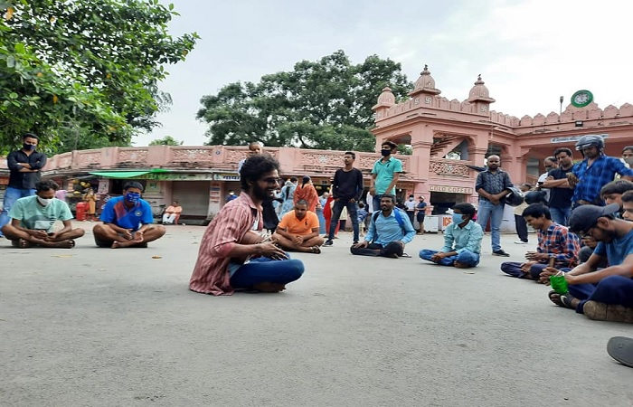 प्रधानमंत्री मोदी के संसदीय क्षेत्र वाराणसी के हनुमान प्रसाद पोद्दार अंध विद्यालय को बंद कर दिया गया है, जिसके ख़िलाफ़ गुरुवार को दृष्टिबाधित छात्रों ने बीएचयू स्थित विश्वनाथ मंदिर के सामने प्रदर्शन किया।
