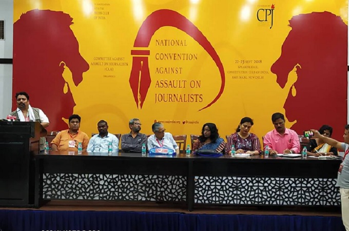 दिल्ली के कॉन्स्टीट्यूशन हॉल में 22-23 सितंबर को आयोजित कमेटी अगेन्स्ट असॉल्ट ऑन जर्नलिज़्म (CAAJ) सम्मेलन पत्रकारों के उत्पीड़न के ख़िलाफ़ देश भर में जनमत तैयार करने और इस लिहाज़ से एक प्रभावी तंत्र विकसित करने के संकल्प के साथ सम्पन्न हुआ। इस दो दिवसीय कन्वेंशन को प्रेस क्लब ऑफ़ इंडिया और अंतरराष्ट्रीय साख वाले पत्रकार संगठन ‘कमेटी टू प्रोटेक्ट जर्नलिस्ट’ (CPJ) का समर्थन हासिल हुआ। इसके अलावा 30 से ज़्यादा पत्रकारिता संस्थानों और जनसंगठनों इसके आयोजन में शिरकत की।