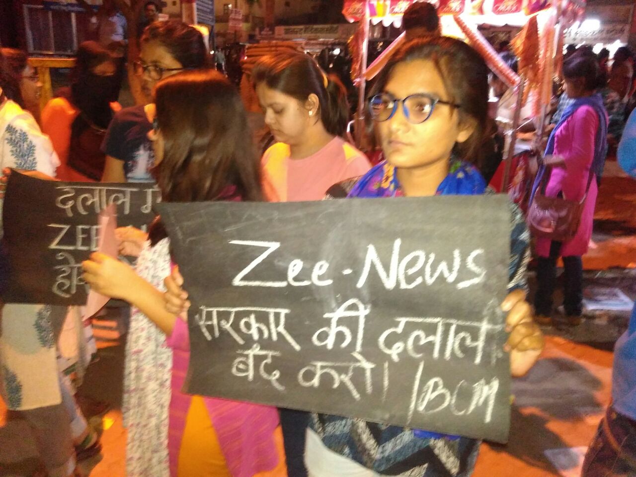 आल इंडिया स्टूडेंट एसोसिएशन (आइसा) और भगत सिंह छात्र मोर्चा (बीसीएम) के संयुक्त आह्वान पर सैकड़ों की संख्या में छात्र-छात्रा शनिवार की शाम करीब सात बजे लंका स्थित गेट पर इकट्ठा हुए और ज़ी न्यूज़ टीवी चैनल के खिलाफ जमकर नारेबाजी करने लगे। प्रदर्शनकारियों का कहना था कि ज़ी न्यूज़ गत सितंबर महीने की तरह छात्र समुदाय को बदनाम करने के लिए प्रोपगैंडा रच रहा है। पिछले दो दिनों से उसकी ओबी वैन विश्वविद्यालय परिसर में घूम रही है और वह चुनिंदा छात्रों का इंटरव्यू लेकर विश्वविद्यालय प्रशासन और सरकार के पक्ष में माहौल बनाने की कोशिश कर रहा है।