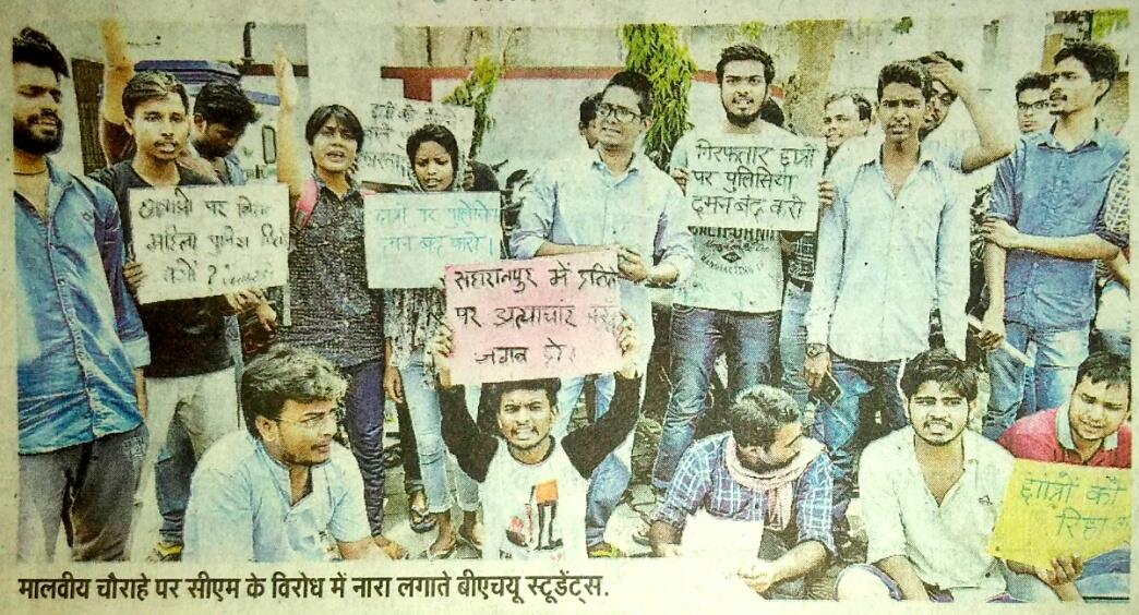 हम नागरिक संगठन और बीएचयू के अध्यापक आपका ध्यान इस ओर दिलाना चाहते हैं कि दिनांक 27 मई को मुख्यमंत्री आदित्यनाथ के बीएचयू आगमन पर विश्वविद्यालय और आइआइटी के विद्यार्थी सहारनपुर में दलितों पर हुए हमले के खिलाफ बीएचयू गेट पर शांतिपूर्ण तरीके से बैठकर प्रदर्शन कर रहे थे,जो कि हमारे लोकतंत्र में किसी का भी संवैधानिक अधिकार है। इन विद्यार्थियों पर भारी संख्या में पुलिस बल ने हमला किया और उन्हें जबरदस्ती मारपीट कर और खींच कर ट्रक में भर दिया। गाड़ी में भर कर इन विद्यार्थियों को बुरी तरह पीटा गया, उन्हें गन्दी गालियां दी गईं, शक्ल-सूरत और कपड़ों को लेकर सामन्ती व्यंग्य किए गए। ये सारी कार्रवाई लंका थाना सब-इंस्पेक्टर महेश मिश्रा ने की। महेश मिश्रा ने महिला पुलिस की मौजूदगी के बावजूद खुद तीन छात्राओं को मारा-पीटा, उनके साथ धक्का-मुक्की की, उन्हें रंडी, वेश्या सहित अन्य गन्दी गालियां दीं और उनके गुप्तांगों में पेट्रोल डालने की धमकी दी। छात्राओं को दिन-भर कैंट थाने में बैठाए रखा गया,जहां शौचालय की सुविधा भी नहीं थी। महेश मिश्रा ने इन विद्यार्थियों को एनकाउंटर में मार देने की धमकी भी दी।