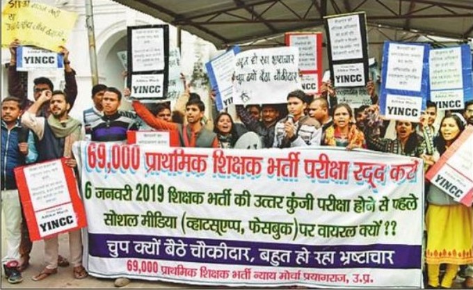 न्याय मोर्चा उत्तर प्रदेश के संयोजक सुनील मार्य ने छात्र-युवा और सामाजिक संगठनों से भ्रष्टाचार के ख़िलाफ़ लड़ाई में शामिल होने की अपील की है। सुनील मार्य ने कहा कि 69,000 शिक्षक भर्ती परीक्षा में व्याप्त भ्रष्टाचार के खिलाफ, भर्ती परीक्षा रद्द करने व सीबीआई जांच की मांग को लेकर परीक्षा के दिन से ही विरोध शुरू हो गया था। 7 जनवरी से लगातार दो महीने पीएनपी पर धरना प्रदर्शन भी हुआ। परीक्षा रद्द की मांग पर इलाहाबाद हाईकोर्ट में दो याचिकाएं भी दायर हुईं। 12 मई 2020 को लिखित परीक्षा का रिजल्ट जारी किया गया। इस परीक्षा में कुल 1,46,060 कैंडिडेट पास हुए। यानी रिक्त पदों की संख्या 69 हजार के दो गुने से भी ज्यादा।