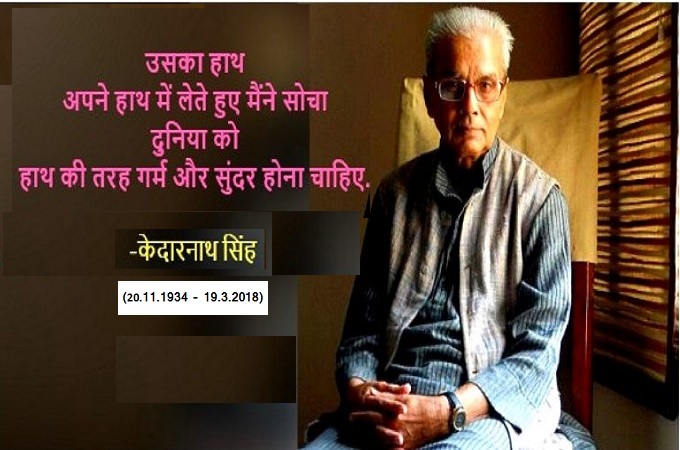 हिंदी के बेहद महत्वपूर्ण कवि केदारनाथ सिंह का 19 मार्च की शाम निधन हो गया। वे काफ़ी दिनों से बीमार थे और दिल्ली के एम्स में उनका इलाज चल रहा था। बलिया ज़िले के चकिया गाँव में 1934 में जन्मे केदारनाथ सिंह ने शुरुआत गीतों से की थी और पडरौना के एक कॉलेज में प्राचार्य थे। बाद मे वे जेएनयू आ गए और लोकप्रिय शिक्षक और यशस्वी कवि के रूप में प्रतिष्ठित हुए। 2013 में उन्हें ज्ञानपीठ सम्मान से विभूषित किया गया था। हम श्रद्धांजलि स्वरूप उनके तीन छात्रों के संस्मरण प्रकाशित कर रहे हैं। जगदीश्वर चतुर्वेदी 1980 के आस पास तो पंकज चतुर्वेदी और संजय जोशी नब्बे के दशक की शुरुआत में उनके छात्र थे- संपादक