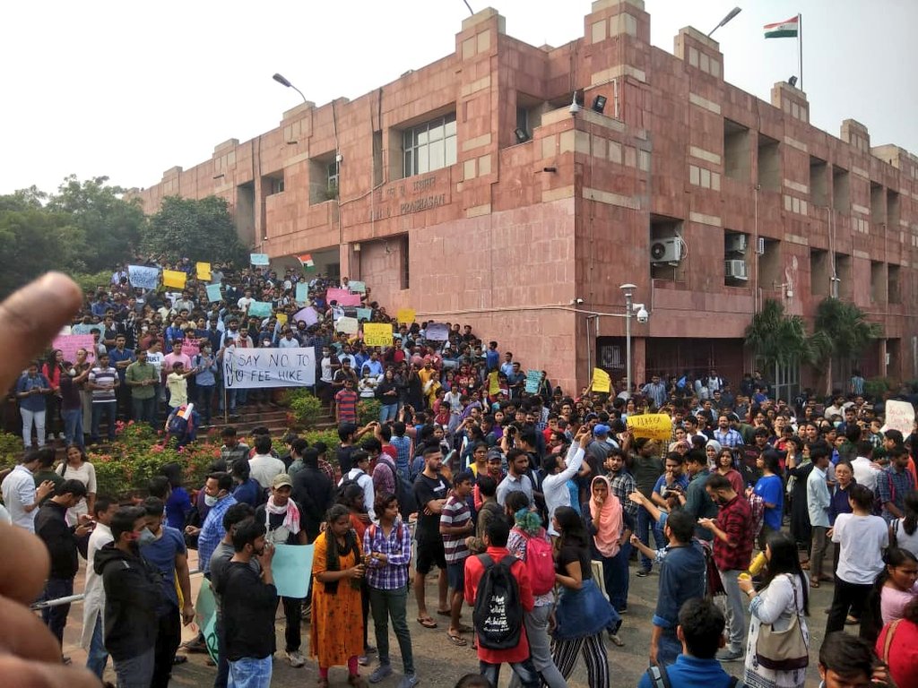 Delhi: Jawaharlal Nehru Students' Union organises protest over different issues including fee hike, outside university campus. pic.twitter.com/KGU8epEOwD