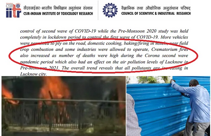 कोविड की दूसरी लहर की भयावहता की एक तस्वीर यूपी की राजधानी लखनऊ से आयी है। इंडियन इंस्टीट्यूट ऑफ टॉक्सीलॉजी रिसर्च (भारतीय विष अनुसंधान संस्थान) ने अपनी एक रिपोर्ट में कहा है कि दूसरी लहर के समय जिस बड़ी तादाद में शव जलाये गये, वह भी लखनऊ में प्रदूषण बढ़ने का कारण बना।
