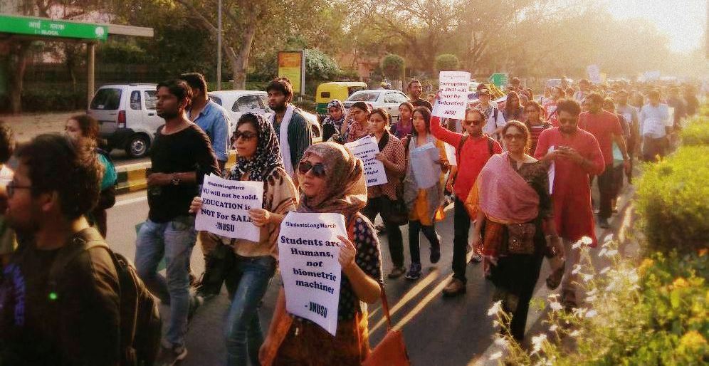 जेएनयू स्टूडेंट्स यूनियन और जेएनयू टीचर्स असोसिएशन की इस सम्मिलित रैली में शामिल होने के लिए दूसरे विश्वविद्यालयों और दिल्ली के लोगों से भी अपील की गई थी। इस विरोध मार्च के केन्द्र में जेएनयू में 75 फीसदी उपस्थिति, सीटों में कटौती, यूजीसी के हालिया फैसलों के अलावा प्रोफेसर अतुल जौहरी के निलम्बन की मांग अहम मुद्दा था।