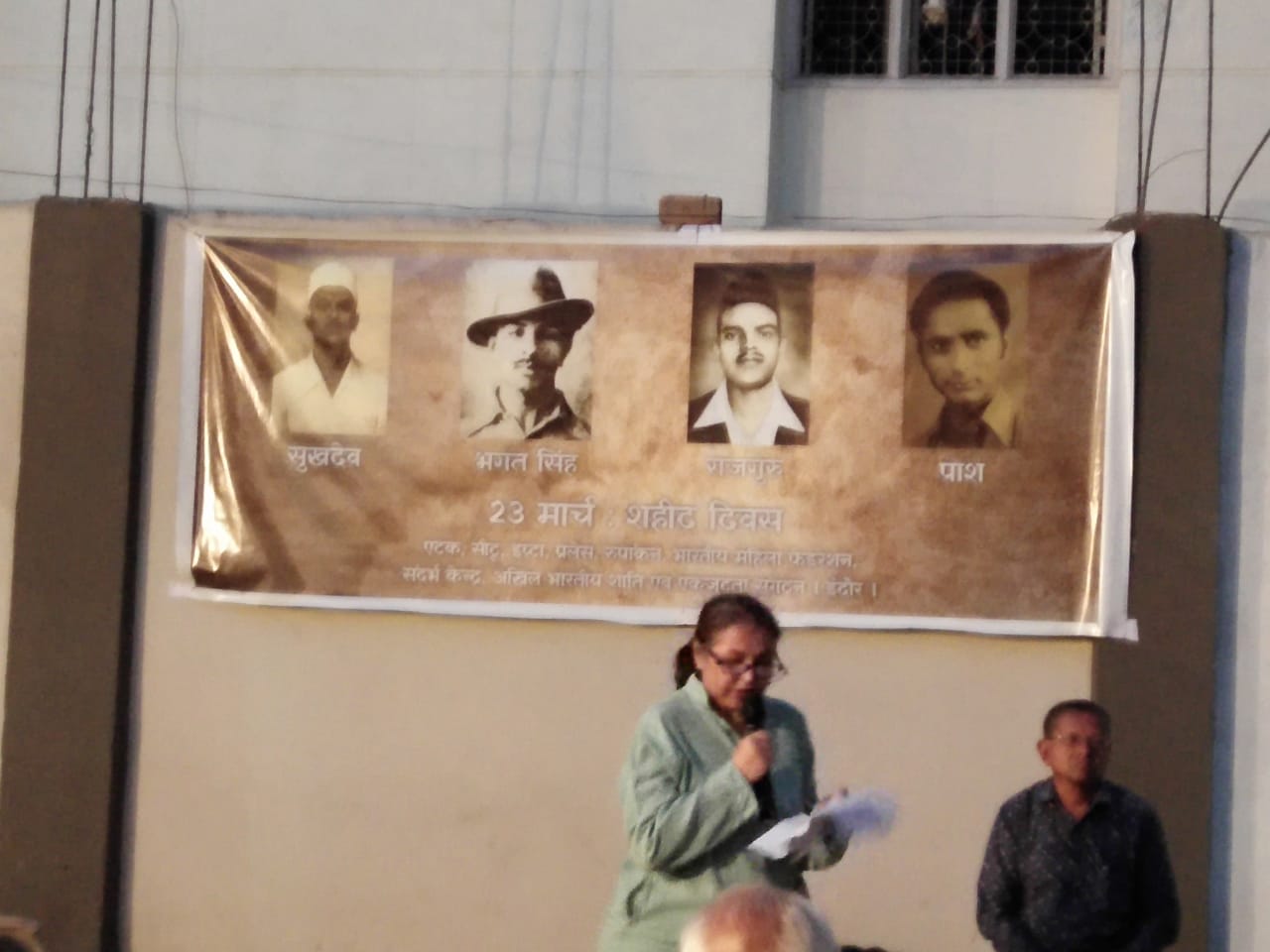 इंदौर, 23 मार्च, 2019: शहीद दिवस की शाम शहर के कलाकारों और वामपंथी कार्यकर्ताओं ने मिल कर भगत सिंह, राजगुरु, सुखदेव के साथ पंजाब के क्रान्तिकारी कवि अवतार सिंह पाश को श्रद्धांजलि दी और उनके विचारों को समकालीन समय के बरक्स रखकर याद किया। यह कार्यक्रम वल्लभ नगर स्थित शहीद भवन में किया गया। शहीदों को याद करते हुए प्रगतिशील लेखक संघ के राष्ट्रीय सचिव विनीत तिवारी, श्रमिक संगठन सीटू के राज्य सचिव मंडल सदस्य कैलाश लिम्बोदिया और भारतीय महिला फेडरेशन की राज्य सचिव सारिका श्रीवास्तव ने अपने विचार साझा किये।