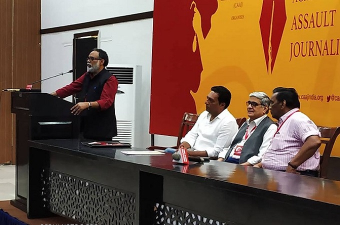 दिल्ली के कान्स्टीट्यूशन क्लब में आज सुबह पत्रकारों पर हमले के ख़िलाफ़ दो दिवसीय राषट्रीय कन्वेंशन प्रारंभ हुआ। इस कन्वेंशन में शामिल होने देश के हर कोने से पत्रकार दिल्ली पहुँचे हैं। उद्घाटन सत्र को देशबंधु अख़बार के एडिटर इन चीफ़ ललित सुरजन और अभिनेता/सामाजिक कार्यकर्ता प्रकाश राज ने संबोधित किया। अध्यक्षता तीसरी दुनिया के संपादक आनंद स्वरूप वर्मा और संचालन मीडिया विजिल के संस्थापक संपादक डॉ.पंकज श्रीवास्तव ने किया। पत्रकारों की अंतरराष्ट्रीय संस्था CPJ (कमेटी टू प्रोटेक्ट जर्नल्सिट) के भारतीय प्रतिनिधि कुणाल मजूमदार ने पत्रकारों की स्थित पर रिपोर्ट पेश की और संगठन की ओर से आयोजन को समर्थन दिया।