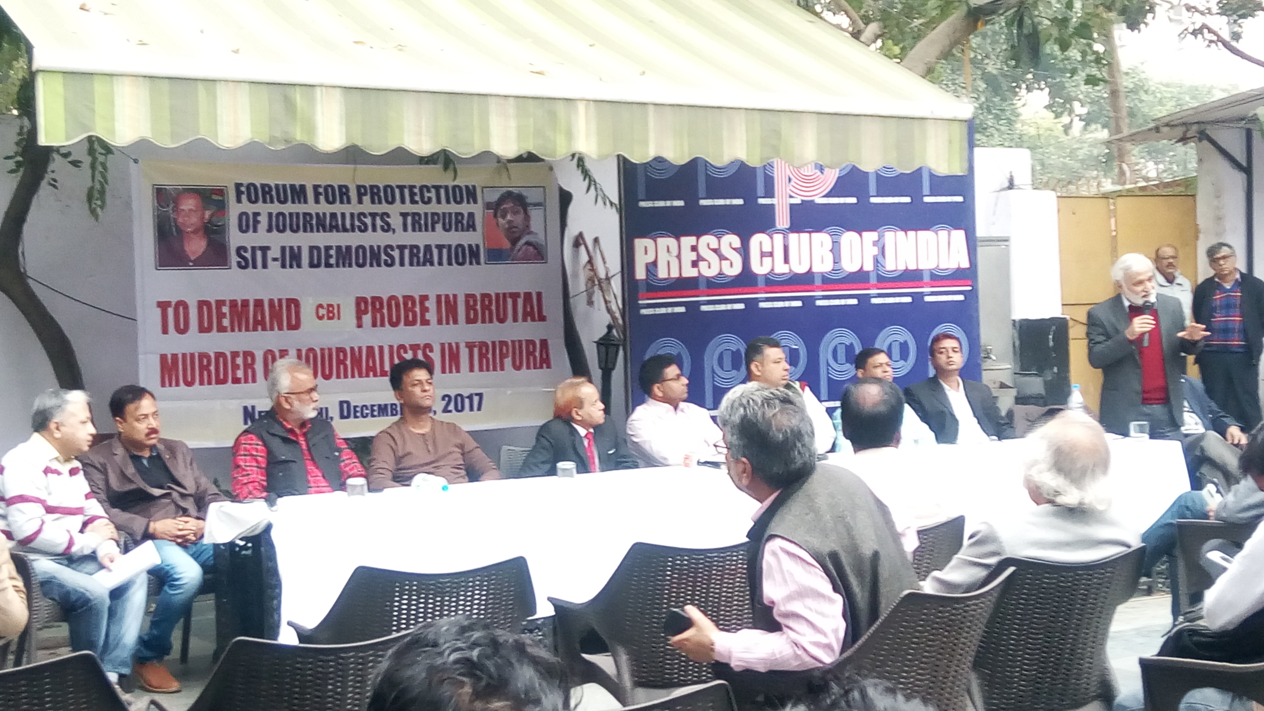त्रिपुरा में पिछले दो महीने में दो पत्रकारों की हत्या के विरोध में दिल्ली के प्रेस क्लब ऑफ इंडिया में एक प्रतिरोध सभा का आयोजन किया गया जिसमें वरिष्ठ पत्रकारों समेत त्रिपुरा के पत्रकार संगठन ने हिस्सा लिया। दिनों एक पत्रकार सुदीप दत्ता भौमिक को त्रिपुरा स्टेट राइफल्स (टीएसआर) की दूसरी बटालियन में तैनात एक जवान ने गोली मार दी थी। इससे पहले सितम्बर में शांतनु भौमिक नाम के पत्रकार की अगवा कर के हत्या कर दी गई थी।