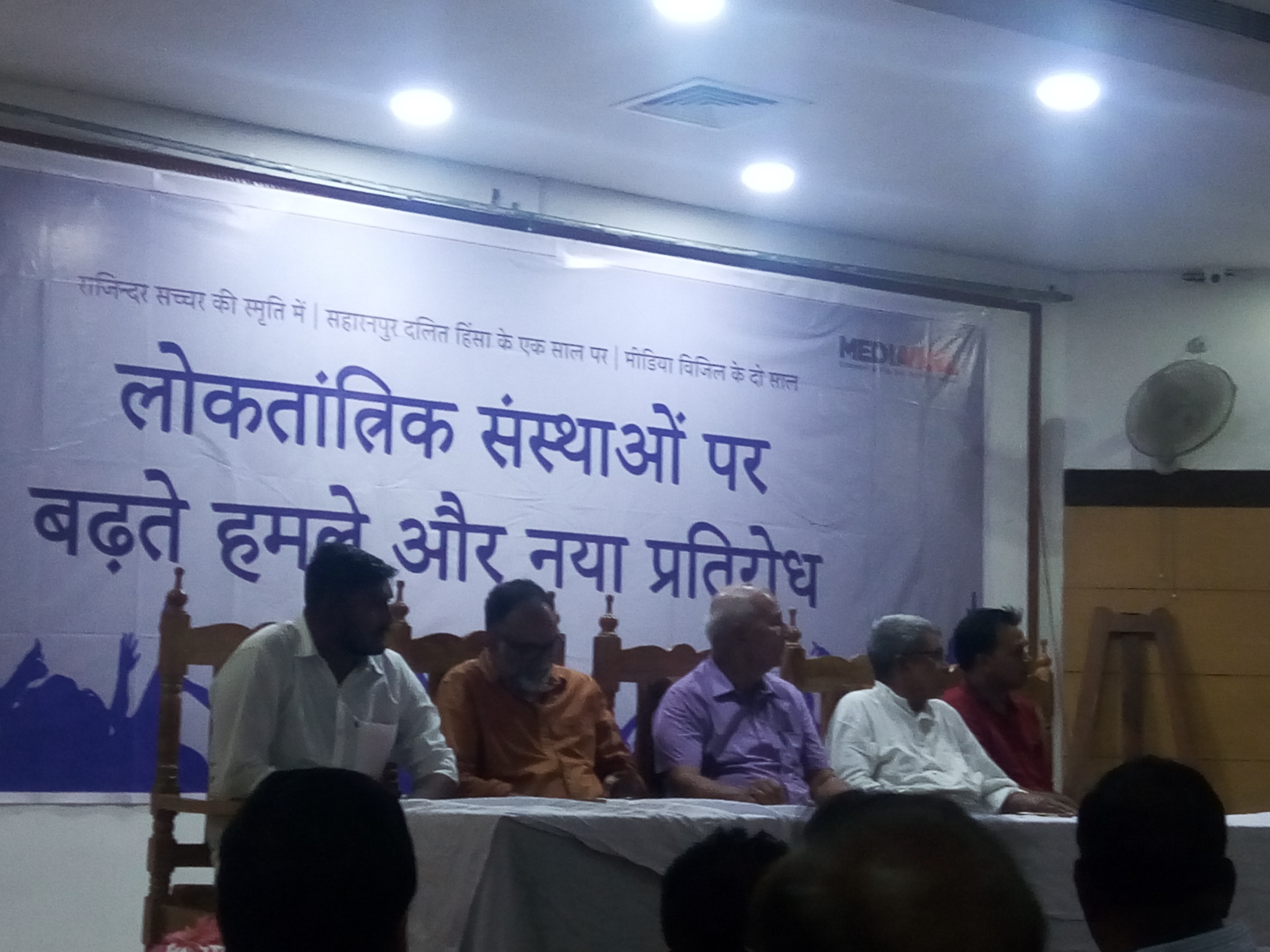 कार्यक्रम की अध्यक्षता कर रहे रिहाई मंच के अध्यक्ष मुहम्मद शुऐब ने कहा कि लोकतान्त्रिक संस्थाओं पर यह हमला दरअसल उन बुनियादों पर हमला है जिन पर यह देश टिका है. यह सिर्फ दलितों मुसलमानों को बचाने का सवाल ही लोकतंत्र और संविधान को बचाने का सवाल है. रिहाई मंच इस दिशा में संघर्ष करने वाले सभी आंदोलनों का समर्थन करता है.