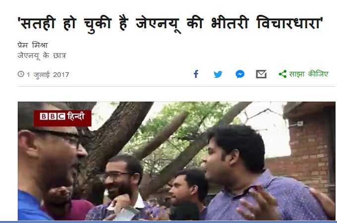 हम तो समझे थे कि बीबीसी अल्पसंख्यक छात्र का अनुभव के बहाने दुनिया के सामने कुछ और लाना चाहता था…और जो कुछ भी वह इस लेख के बहाने सामने लाता है वह महज आरोप है. जैसे-अगर आप लेफ़्ट से रहे हैं, तो प्रोफ़ेसर आपके लिए अलग नियम रखते हैं. लेकिन यह नियम क्या हैं, पूरा लेख पढ़ने पर भी स्पष्ट नहीं होता.