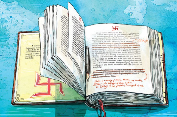 जब एनसीईआरटी द्वारा प्रकाशित पुस्तकों को हटाने की बात हुई थी । लेकिन यह एजेंडा लागू नहीं हो पाया । अब एक खास खेमा सत्ता आधारित ताकत के बूते भारतीय प्रतीकों , मिथकों मुहावरों और शब्दावलियों को बड़ी चालाकी से अपने हक में ढाल रहा है ।