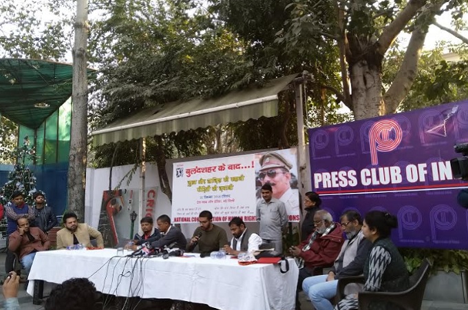 इंस्पेक्टर सुबोध सिंह की जान लेने वाली बुलंदशहर हिंसा भीड़ का कोई स्वत:स्फूर्त कारनामा था या फिर इसके पीछे कोई साज़िश थी। इन जैसे तमाम सवालों का जवाब जानने एनसीएचआरओ, एआईपीएफ, आरटीएफ जैसे संगठनों का एक सम्मिलित तथ्यान्वेषी दल बुलंदशहर गया। आज इस टीम ने दिल्ली स्थित प्रेस क्लब में अपनी जाँच रिपोर्ट जारी की जिसमें साफ़तौर से कहा गया कि यह घटना किसी साजिश का नतीजा है। इस मौके पर इंस्पेक्टर सुबोध कुमार सिंह के बेटे श्रेय सिंह भी मौजूद थे। उन्होंने आश्चर्य जताया कि इस मामले का मुख्य आरोपी, बजरंग दल का जिला प्रमुख योगेश राज अभी तक गिरफ़्तार नहीं किया जा सका है।