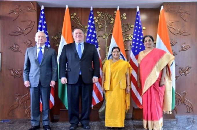 पिछले दिनों दिल्ली मे भारत और अमेरिका के बीच टू प्लस टू की बैठक सम्पन्न हुई है इस बैठक में भारत की तरफ से विदेश मंत्री सुषमा स्वराज और रक्षा मंत्री निर्मला सीतारमण ने भाग लिया अमेरिका के विदेश मंत्री और रक्षा मंत्री भी इस बैठक में भाग लेने के लिए भारत आए थे।