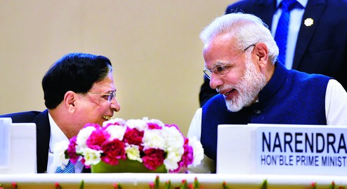 सर्वोच्च न्यायपालिका और सरकार के बीच की खींचातानी का सबसे वीभत्स रूप उसी दिन सबके सामने आ गया था जब प्रधान न्यायाधीश दीपक मिश्रा से दो कार्यकाल पहले प्रधान न्यायाधीश रहे जस्टिस टी एस ठाकुर सार्वजनिक रूप से प्रधानसेवक मोदी के सामने यह कहते हुए फफक पड़े थे कि हमारे पास जजों की भारी कमी है और सरकार हमें जज मुहैया नहीं करा रही है। यह सरकार और सर्वोच्च न्यायपालिका के बीच का लंबे अंतराल में सबसे खटास भरा दृश्य था। इस घटना पर वहां बैठे प्रधानसेवक ने कोई प्रतिक्रिया नहीं दी, बल्कि उनके शूरवीर कानून मंत्री रविशंकर प्रसाद ने बाद में बताया कि सरकार प्रधान न्यायाधीश की बात पर ‘गंभीरतापूर्वक’ विचार करेगी। इसका परिणाम क्या हुआ, यह आज तक देखने को नहीं मिला। जस्टिस ठाकुर के बाद प्रधान न्यायाधीश बने जस्टिस खेहर भी रिटायर हो गए लेकिन परिणाम ढाक के तीन पात ही रहा।