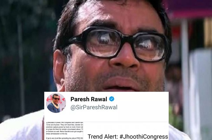 ट्रेंड अलर्ट: #Jhoothicongress शीर्षक वाले गूगल डॉक्यूमेंट को भाजपा सांसद परेश रावल ने ट्विटर पर शेयर किया। कांग्रेस के कथित दोगलेपन के कई उदाहरणों को सूचीबद्ध करने वाले डॉक्यूमेंट को रावल ने 27 फरवरी को शाम 3:40 बजे प्रकाशित किया।