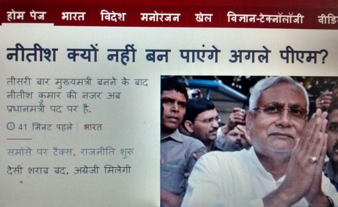 संपादन के बाद बीबीसी ने लिखा, “लगातार तीसरी बार और कुल पांचवीं बार मुख्यमंत्री बनने के बाद नीतीश कुमार 2019 में देश के अगले प्रधानमंत्री बनने का सपना देख रहे हैं.”