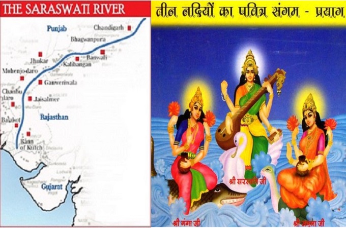 हम बात करेंगे ‘सरस्वती’ की जिसके बारे में धार्मिक मान्यता यही है कि लुप्त धारा के रूप में वह आज भी प्रयागराज के संगम में बह रही है। यानी वैदिक साहित्य मे उल्लिखित सरस्वती नदी का यहीं गंगा-यमुना में संगम होता था। सरकार के तमाम प्रचार साहित्य में भी यह बात जोर-शोर से कही गई है।