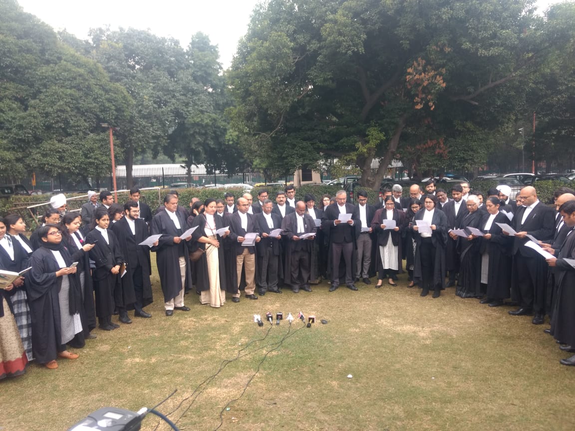 नागरिकता (संशोधन) कानून (सीएए), राष्ट्रीय नागरिकता रजिस्टर (एनआरसी) और हालिया घटनाक्रमों के परिप्रेक्ष्य में सुप्रीम कोर्ट के वकीलों के एक समूह ने मंगलवार को संविधान की प्रस्तावना पढ़ी और जेएनयू छात्रों पर हिंसा के खिलाफ एक बयान जारी किया।