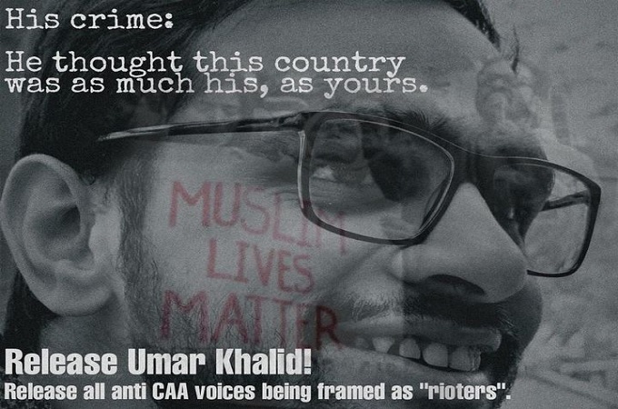 उमर खालिद उन सैकड़ों आवाज़ों में एक है जिन्होंने सीएए विरोधी प्रदर्शनों के दौरान पूरे देश में संविधान के पक्ष में आवाज़ उठायी और हमेशा शांतिपूर्ण, अहिंसक और लोकतांत्रिक तरीकों पर जोर दिया। उमर खालिद संविधान और लोकतंत्र के पक्ष में उठने वाली एक शक्तिशाली युवा आवाज़ के रूप में उभरकर सामने आया। दिल्ली पुलिस की ओर से दिल्ली हिंसा को लेकर उसे बार-बार फ़र्ज़ी मामलों मे फँसाने की कोशिश दरअसल असहमति की आवाज़ को दबाने का प्रयास है। यह ग़ौरतलब है कि अब तक हुई 20 गिरफ़्तारियों में 19 लोग 31 साल से कम उम्र के हैं जिनमें 17 पर दमनकारी यूएपीए लगाकर दिल्ली में हिंसा फैलाने के आरोप में जेल भेज दिया गया जबकि जिन्होंने वाकई दिल्ली में हिंसा भड़काई और इसमें शामिल रहे, उन्हें छुआ भी नहीं गया। जिन्हें गिरफ़्तार किया गया उनमें पाँच महिलाएँ भी हैं और एक को छोड़ सभी छात्रा हैं।