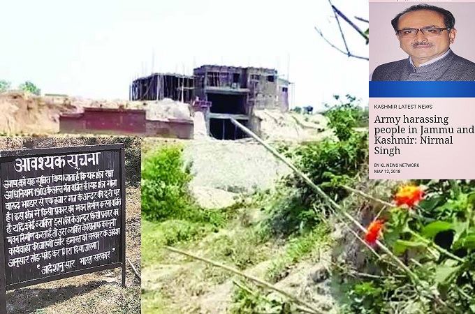 जम्मू कश्मीर के बीजेपी के शीर्ष नेताओं ने सेना के गोला बारूद भंडार की सीमा में आने वाली ज़मीन ख़रीद ली है। विधानसभा के स्पीकर और हाल तक उपमुख्यमंत्री रहे निर्मल सिंह, उनकी पत्नी ममता सिंह, मौजूदा उप मुख्यमंत्री कविंद्र गुप्ता ने एक कंपनी के ज़रिए ज़मीन खरीदी है। यह ज़मीन जम्मू के नागरोटा में है। सेना के भंडार के बाहर, नियम है कि हज़ार गज की परिधि में कोई निर्माण नहीं हो सकता है क्योंकि विस्फोट की स्थिति में ख़तरनाक हो सकता है।
