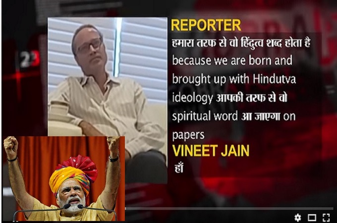 जिसे देश का सबसे प्रतिष्ठित मीडिया समूह माना जाता हैं ऐसे टाइम्स ऑफ़ इंडिया ग्रुप के मैनेजिंग डायरेक्टर विनीत जैन ने ५०० करोड़ के विज्ञापन लेकर हिंदुत्व एजेंडा चालने पर हामी भर दी। लेकिन वो अरबों रूपए कैश में लेने को तैयार नहीं हुए. जब संघ के नेता का वेश धारण किये रिपोर्टर ने जैन से कहा कि वो नकद पैसा विदेश में ले लें तो टाइम्स ग्रुप के मालिक का कहना था कि अगर वो इस नकद पैसे को अम्बानी या अडानी को दे दें तब वो किसी डील के तहत ये पैसा इन उद्योगिक घरानो से ले लेंगे