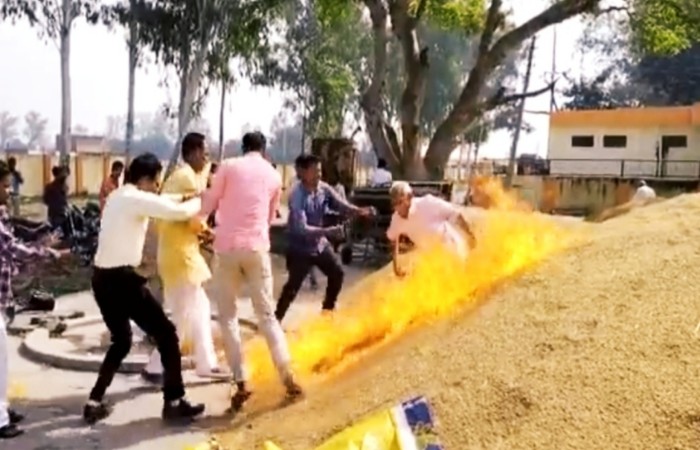 उत्तर प्रदेश के किसान श्री समोध सिंह पिछले 15 दिनों से अपनी धान की फसल को बेचने के लिए मंडियों में मारे-मारे फिर रहे थे, जब धान बिका नहीं तो निराश होकर इसमें स्वयं आग लगा दी।