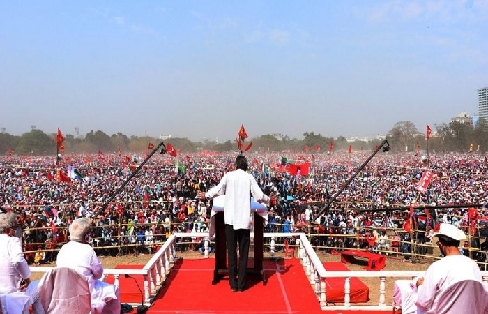 More than 10 lakh people have assembled and the venue is overflowing. #PeoplesBrigade pic.twitter.com/nwdTijjq8r— Sitaram Yechury (@SitaramYechury) February 28, 2021