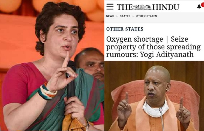 उत्तर प्रदेश में आक्सीजन, बेड और दवाओं की कमी से लखनऊ समेत ज़्यादातर शहरों में हाहाकार मचा है, लेकिन योगी आदित्यनाथ सरकार इसे महज़ दुष्प्रचार बता रही है साथ ही ऐसी बाते करने वालों की संपत्ति जब्त करने की धमकी भी दी जा रही है। कांग्रेस महासचिव प्रियंका गाँधी ने इस संबंध में मुख्यमंत्री योगी आदित्यनाथ को चुनौती देते हुए उनकी संपत्ति ज़ब्त करने की चुनौती दी है।